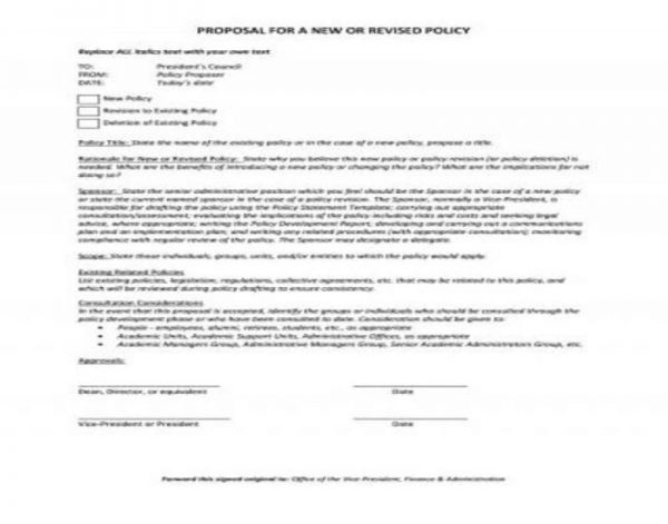 Typically, there are two outcomes when it comes to policy proposals namely effectiveness and efficiency. Making changes to a certain setup can be a difficult undertaking but writing facts in an official document is an excellent way to present your case. In every policy proposal template, there’s always an attempt to deal with a problem.